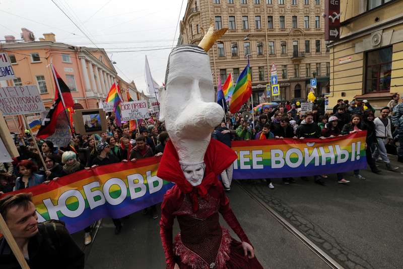 Активисти од ЛГБТ заедницата протестираат во Санкт Петербург во Русија. Се движеа низ улиците на големиот руски град, барајќи ги своите права.