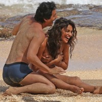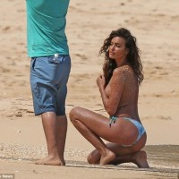 Девојката на најдобриот фудбалер Кристијано Роналдо, Ирина Шајк, моментално се наоѓа на Хаваите каде што го снима едиторијалот за новиот број на магазинот „Спорт илустрејтед“. На згодната Русинка друштво на плажата ѝ прави непознат манекен со кого се тркалаше по песокот.