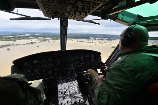 epa04214676 A picture made available on 19 May 2014 shows a view from the helicopter on the flooded Obrenovac, Serbia, 17 May 2014. The death toll from flooding in the Balkans rose to 40 on 19 May as emergency services in Bosnia, Croatia and Serbia struggled to house those displaced, reinforce dykes on swollen rivers and begin a massive clean-up operation. In Serbia, more casualties were confirmed since 14 May. Thirteen of the 20 victims drowned in Obrenovac, a Belgrade borough that has been hardest-hit over the last week. The Serbian Interior Ministry ordered a full evacuation of Obrenovac as the level of the river Sava is expected to rise. Emergency Situations Ministry and fire services evacuated hundreds of residents by helicopter, trucks, bulldozers and boat from Obrenovac. EPA/SRDJAN ILIC