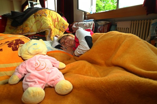 epa04216272 A woman sleeps next to a teddy bear in a shelter for flood victims in Belgrade, Serbia 20 May 2014. A state of emergency has been declared in Serbia due to severe floods caused by rain falling for more than 48 hours. Thousands of people in Bosnia, Serbia and Croatia were evacuated as rising floodwaters swallowed homes and farmland after last week’s record rains. At least 20 people have drowned in Bosnia, and several people are missing. Another 20 people have been killed in Serbia. EPA/KOCA SULEJMANOVIC