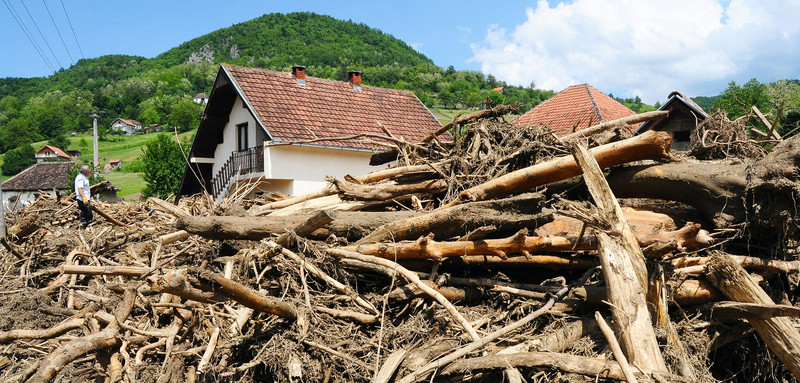 epa04216383 Houses destroyed by landslides caused by the floods in the village of Donja Tresnjica 150 kilometers southwest of Belgrade, Serbia, 20 May 2014. A state of emergency has been declared in Serbia due to severe floods caused by rain falling for more than 48 hours. Thousands of people in Bosnia, Serbia and Croatia were evacuated as rising floodwaters swallowed homes and farmland after last week’s record rains. At least 20 people have drowned in Bosnia, and several people are missing. Another 20 people have been killed in Serbia. EPA/STR SERBIA OUT