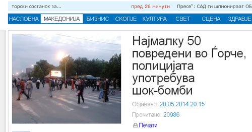 Порталот „Плусинфо“ кој предничеше во ваквите тендензиозни известувања за повредени лица, кои се покажаа како невистинити, пишуваше дека вистинска „војна“ се случувала на улиците, а главната улица наликувала на воена зона.
