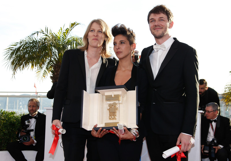 epa04223342 French co-directors (L-R) Claire Burger, Marie Amachoukeli and Samuel Theis pose during the Award Winners photocall after they won the Golden Camera award for their movie ‘Party Girl’ at the 67th annual Cannes Film Festival in Cannes, France, 24 May 2014. EPA/JULIEN WARNAND