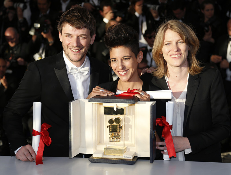 epa04223259 French co-directors (L-R) Samuel Theis, Claire Burger and Marie Amachoukeli pose during the Award Winners photocall after they won the Golden Camera award for their movie ‘Party Girl’ at the 67th annual Cannes Film Festival in Cannes, France, 24 May 2014. EPA/SEBASTIEN NOGIER