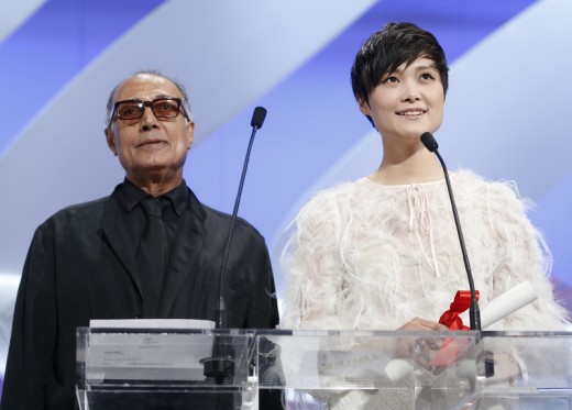 epa04223169 Chinese singer Li Yuchun (R) and Iranian director Abbas Kiarostami (L) attend the Closing Award Ceremony of the 67th Cannes Film Festival, in Cannes, France, 24 May 2014. EPA/IAN LANGSDON