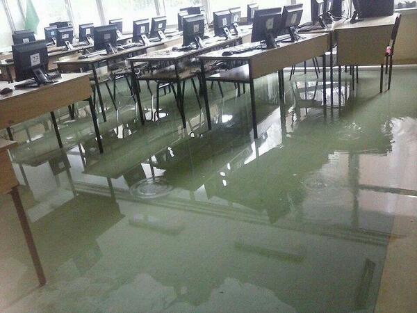 Силното невреме што синоќа го зафати Скопје зад себе остави многу поплавени улици, подруми, јавни објекти. Учениците во скопската гимназија „Јосип Броз – Тито“ утрово ги пречекаа училници полни со вода од синоќешниот дожд.