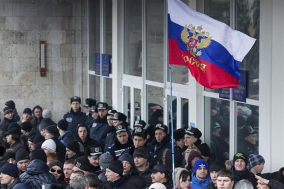 Околу 2.500 луѓе се собраа на плоштадот „Ленин“ во центарот на Доњецк, протестирајќи во поддршка на мирот со знамиња на самопрогласената Доњецка Народна Република и скандирајќи: „Русија“.