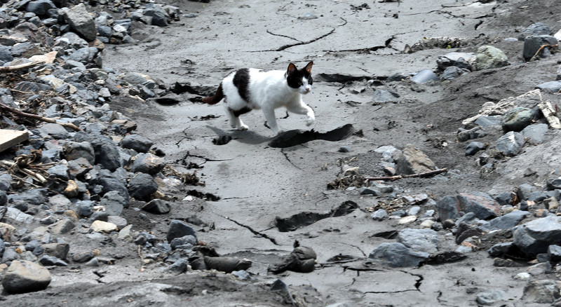 epa04227944 A cat scampers through the mud in the village of Ciganski Potok, following flooding in the vilage Ciganski Potok near the Bosnian town of Zenica 110 km from the capital of Bosnia and Herzegovina of Sarajevo , 27 May 2014. A state of emergency has been declared in Bo.snia and Herzegovina due to severe floods caused by rain falling for several days.E EPA/FEHIIM DEMIR