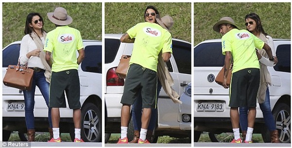 Бразилскито ас Нејмар постигна прекрасен гол од пенал на еден од тренинзите на репрезентацијата, а потоа кришум се извлече на паркингот пред стадионот за да биде со својата девојка Бруна Маркезин.