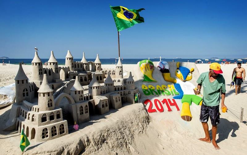 Како се ближи денот, подготовките се во полн замав, па така група уметници на најпознатата плажа во Рио де Жанеиро, Копакабана, направиле скулптури од песок како промоција на мундијалот.