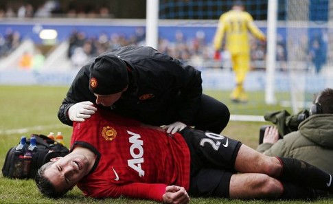 Робин Ван Перси на бизарен начин се здоби со повреда за која се уште нема информации дали ќе остави последици кај напаѓачот. Имено обидувајќи се да стаса топка во денешниот дуел на неговиот Манчестер Јунајтед кај Квинс Парк Ренџерс, холанѓанецот се судри со една од камерите поставени крај аут линијата, по што се пожали на болки во грбот и веднаш беше изваден од игра.