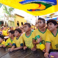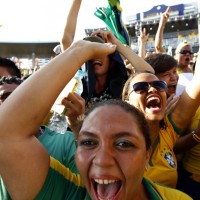 Бои, деколтеа, здолништа, луди фризури, еуфорија – еве како изгледаа бразилските фанови на првиот меч од СП 2014 кога играше нивната селекција против селекцијата на Хрватска