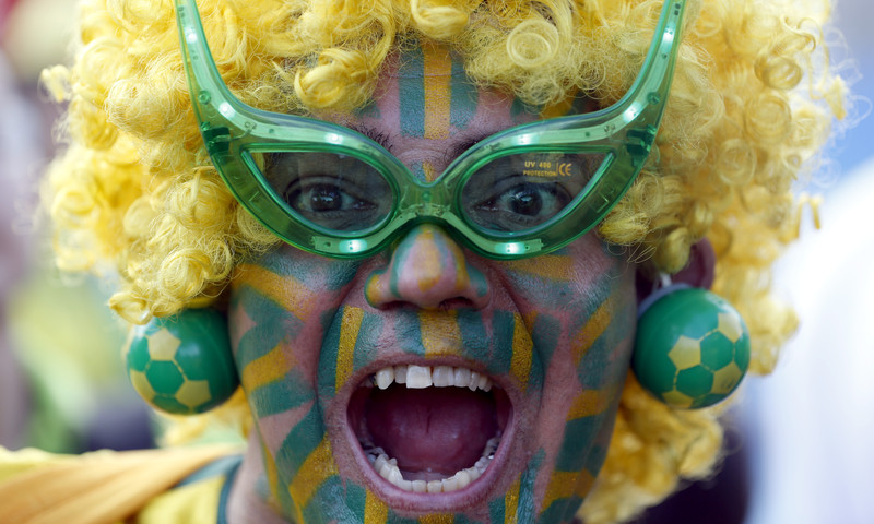 epa04252920 A Brazilian fan reacts while watching the FIFA World Cup 2014 group A preliminary round match between Brazil and Croatia at the FIFA Fan Fest at the Copacabana in Rio de Janeiro, Brazil, 12 June 2014. The FIFA World Cup 2014 will take place in Brazil from 12 June to 13 July 2014. EPA/ABEDIN TAHERKENAREH