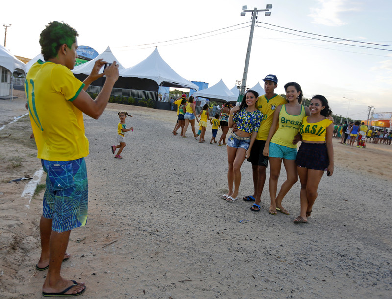epa04252926 Fans take pictures before the the FIFA World Cup 2014 group A preliminary round match between Brazil and Croatia at the FIFA Fan Fest in Natal, Brazil, 12 June 2014. The FIFA grWorld Cup 2014 is taking place in Brazil from 12 June to 13 July 2014. EPA/KAMIL KRZACZYNSKI