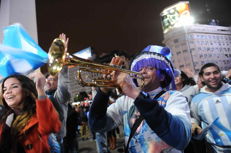 epa04260267 Argentinian soccer fans celebrate Argentina’s victory over Bosnia in the Brazil FIFA World Cup 2014, at the Obeliske in Buenos Aires, Argentina, 15 June 2014. Argentina’s soccer team won against Bosnia in a game for the group F and played at the Maracana stadium, in Rio de Janeiro, Brazil. EPA/Osvaldo Fanton