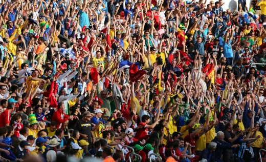 epa04259362 Supporters cheer during the FIFA World Cup 2014 group E preliminary round match between France and Honduras at the Estadio Beira-Rio in Porto Alegre, Brazil, 15 June 2014.