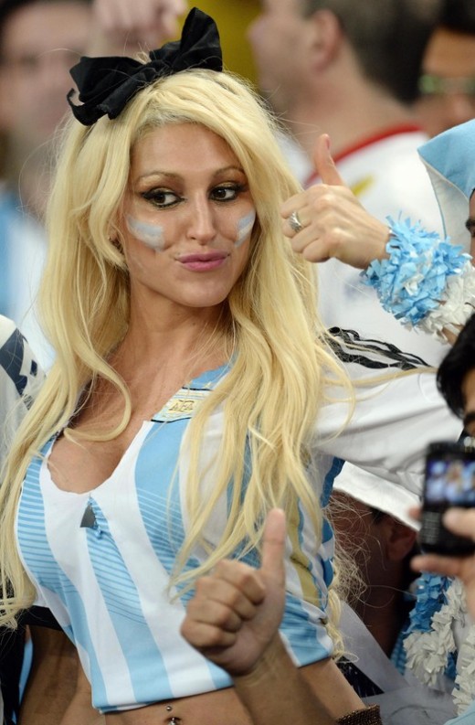 epa04259864 A female Argentinian supporter poses prior the FIFA World Cup 2014 group F preliminary round match between Argentina and Bosnia and Herzegovina at the Estadio do Maracana in Rio de Janeiro, Brazil, 15 June 2014.