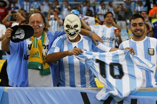 epa04259678 Supporters of Argentina cheer for their team before the FIFA World Cup 2014 group F preliminary round match between Argentina and Bosnia and Herzegovina at the Estadio do Maracana in Rio de Janeiro, Brazil, 15 June 2014.