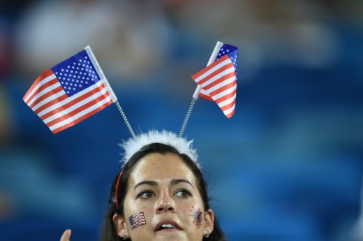 epa04261757 An US fan prior to the FIFA World Cup 2014 group G preliminary round match between Ghana and the USA at the Estadio Arena das Dunas in Natal, Brazil, 16 June 2014.