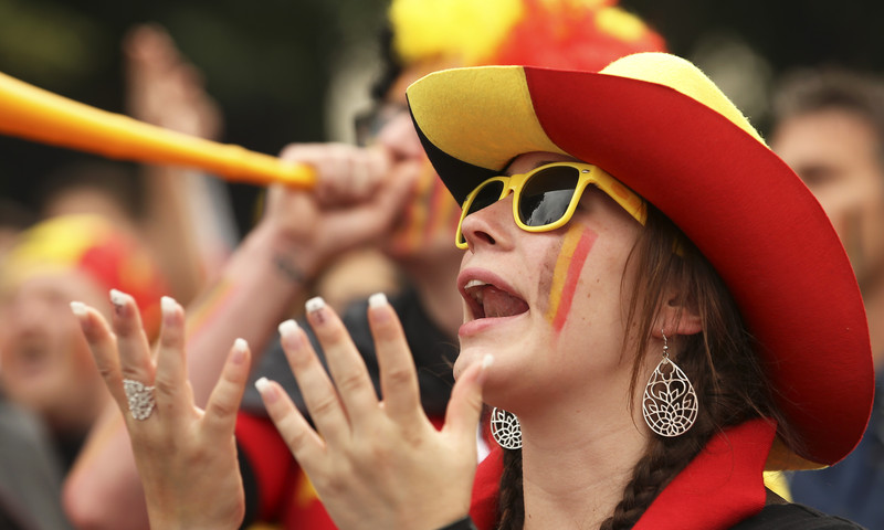 epa04262982 A Belgian soccer fan reacts while watching the Brazil FIFA World Cup 2014 group H preliminary round match between Belgium and Algeria in Namur, Belgium, 17 June 2014. EPA/OLIVIER HOSLET