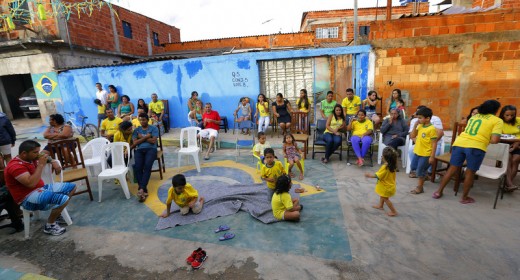 epa04264075 Brazilian fans watch the FIFA World Cup 2014 group A preliminary round match between Brazil and Mexico at a street party in the Vila Estrutural shanty town, 15km from Brasilia, Brazil, 17 June 2014. The match at the Estadio Castelao in Fortaleza ended 0-0. EPA/ROBERT GHEMENT