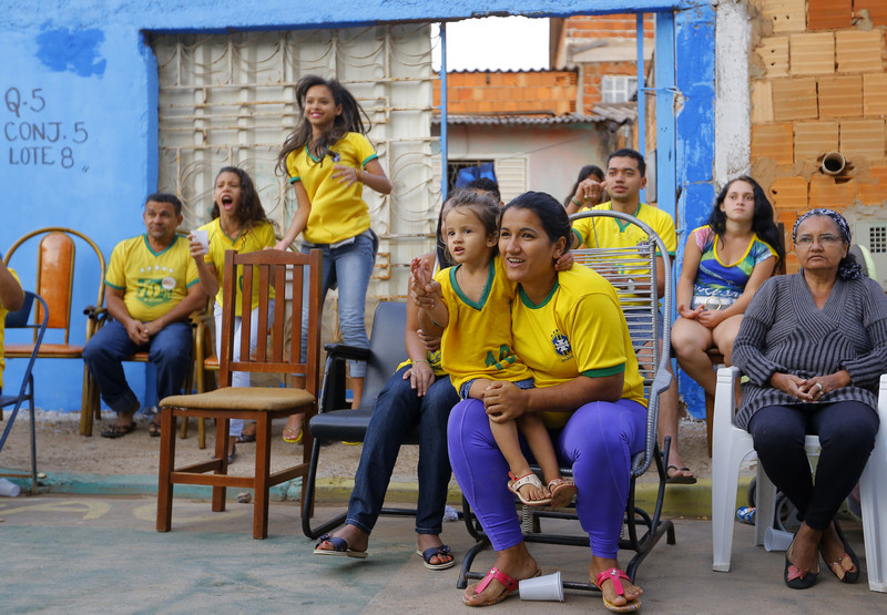 epa04264081 Brazilian fans react while watching the FIFA World Cup 2014 group A preliminary round match between Brazil and Mexico at a street party in the Vila Estrutural shanty town, 15km from Brasilia, Brazil, 17 June 2014. The match at the Estadio Castelao in Fortaleza ended 0-0. EPA/ROBERT GHEMENT