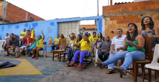 epa04264095 Brazilian fans react while watching the FIFA World Cup 2014 group A preliminary round match between Brazil and Mexico at a street party in the Vila Estrutural shanty town, 15km from Brasilia, Brazil, 17 June 2014. The match at the Estadio Castelao in Fortaleza ended 0-0. EPA/ROBERT GHEMENT