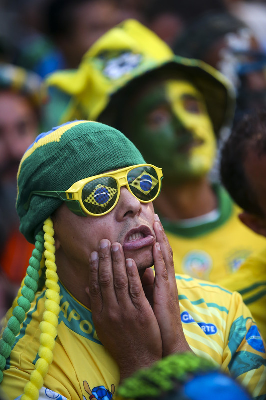 epa04264104 Brazilian fans watching the FIFA World Cup 2014 group A preliminary round match between Brazil and Mexico at the FIFA Fan Fest in Sao Paulo, Brazil, 17 June 2014. The match at the Estadio Castelao in Fortaleza ended 0-0. EPA/DIEGO AZUBEL