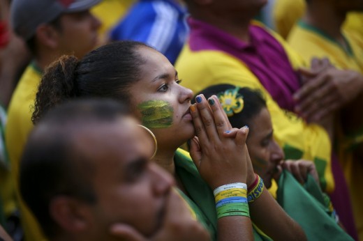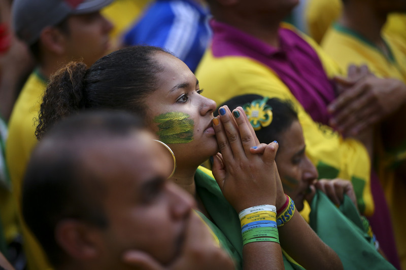 epa04264108 Brazilian fans watching the FIFA World Cup 2014 group A preliminary round match between Brazil and Mexico at the FIFA Fan Fest in Sao Paulo, Brazil, 17 June 2014. The match at the Estadio Castelao in Fortaleza ended 0-0. EPA/DIEGO AZUBEL