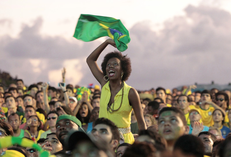 epaselect epa04263907 Brazilian fans react while watching the FIFA World Cup 2014 group A preliminary round match between Brazil and Mexico at the FIFA Fan Fest in Salvador, Brazil, 17 June 2014. The match at the Estadio Castelao in Fortaleza ended 0-0. EPA/GUILLAUME HORCAJUELO