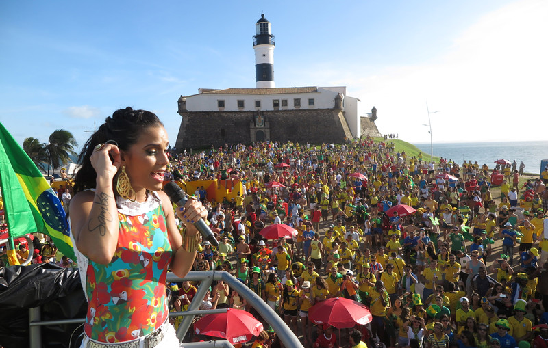 epa04263878 A Brazilian singer performs at the FIFA Fan Fest in Salvador, Brazil, 17 June 2014, before the start of the FIFA World Cup group A match between Brazil vs Mexico. EPA/ALI HAIDER