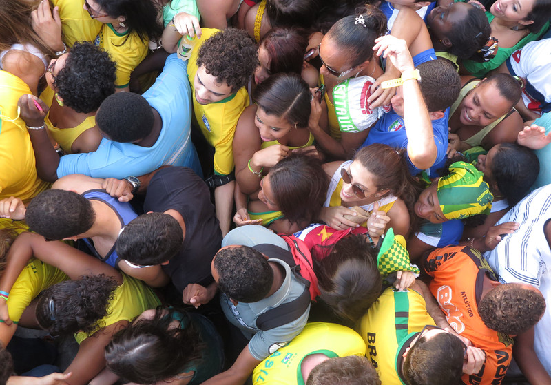 epa04263879 Fans scramble to reach the FIFA Fan Fest in Salvador, Brazil, 17 June 2014, before the start of the FIFA World Cup group A match between Brazil vs Mexico. EPA/ALI HAIDER