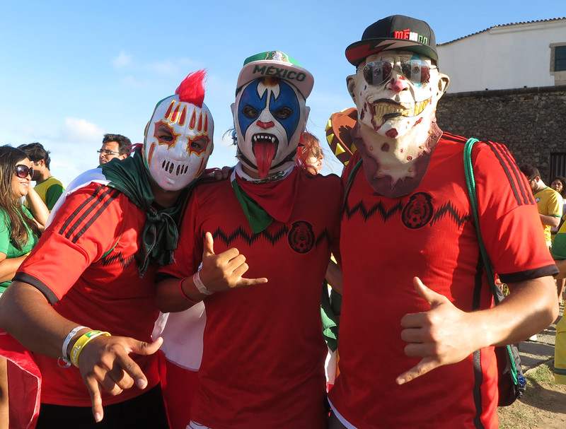 epa04263884 Mexican fans pose at the FIFA Fan Fest in Salvador, Brazil, 17 June 2014, before the start of the FIFA World Cup group A match between Brazil vs Mexico. EPA/ALI HAIDER