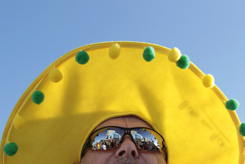 epa04263900 A Brazilian fan watches the FIFA World Cup 2014 group A preliminary round match between Brazil and Mexico at the FIFA Fan Fest in Salvador, Brazil, 17 June 2014. The match at the Estadio Castelao in Fortaleza ended 0-0. EPA/GUILLAUME HORCAJUELO
