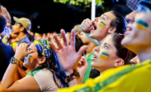 epa04263910 Supporters of Brazil react while watching the FIFA World Cup 2014 Group A match between Brazil and Mexico in the FIFA Fan Fest zone Recife, Brazil, 17 June 2014. EPA/SRDJAN SUKI