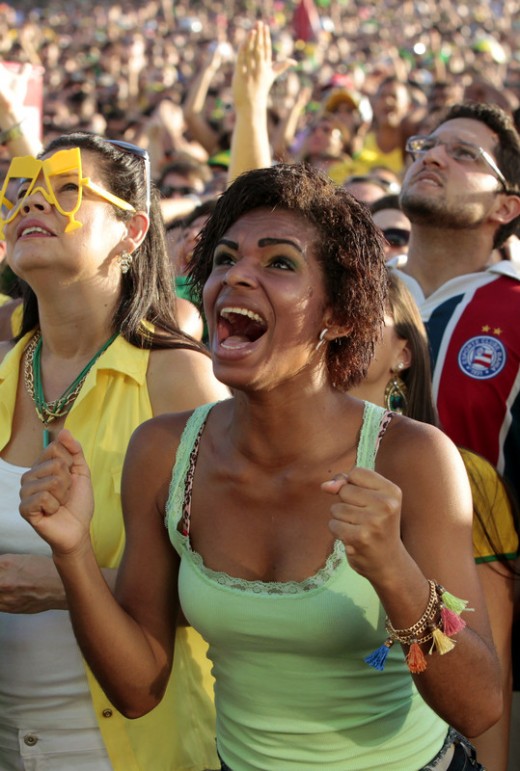 epa04263913 A Brazilian fan reacts while watching the FIFA World Cup 2014 group A preliminary round match between Brazil and Mexico at the FIFA Fan Fest in Salvador, Brazil, 17 June 2014. The match at the Estadio Castelao in Fortaleza ended 0-0. EPA/GUILLAUME HORCAJUELO