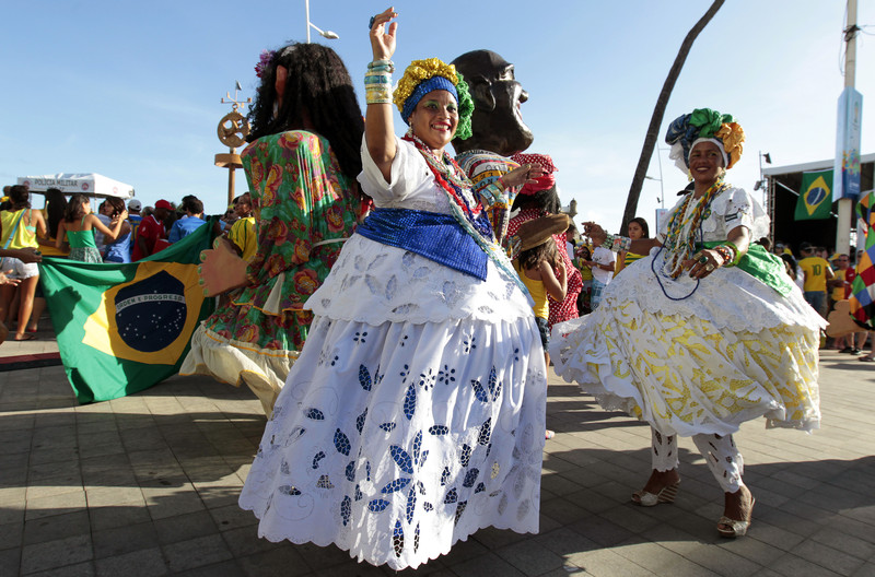 epa04263922 Dancers perform before the FIFA World Cup 2014 group A preliminary round match between Brazil and Mexico at the FIFA Fan Fest in Salvador, Brazil, 17 June 2014. The match at the Estadio Castelao in Fortaleza ended 0-0. EPA/GUILLAUME HORCAJUELO