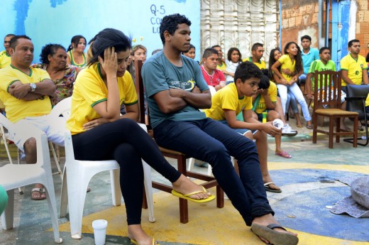 epa04263964 Brazilian fans react while watching the FIFA World Cup 2014 group A preliminary round match between Brazil and Mexico at a street party in Estructura, Brazil, 17 June 2014. The match at the Estadio Castelao in Fortaleza ended 0-0. EPA/SHAWN THEW