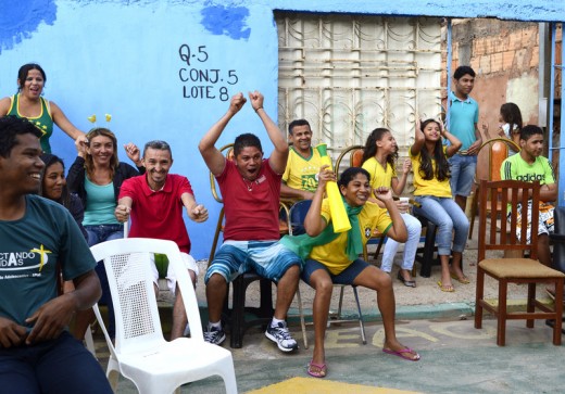 epa04263965 Brazilian fans react while watching the FIFA World Cup 2014 group A preliminary round match between Brazil and Mexico at a street party in Estructura, Brazil, 17 June 2014. The match at the Estadio Castelao in Fortaleza ended 0-0. EPA/SHAWN THEW