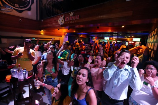 epa04263988 Brazilian supporters at a bar in Rio watch the FIFA World Cup 2014 Group A match between Brazil and Mexico, Rio de Janeiro, Brazil, 17 June 2014. EPA/ABEDIN TAHERKENAREH