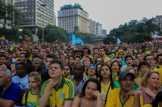 epa04264021 Brazilian supporters gathers at the FIFA fan fest in Sao Paulo, Brazil, 17 June 2014, during the match against Mexico for A group in Fifa World Cup 2014. The game ended 0-0 and Brazil will face Cameroon in their next match on 23 June 2014. EPA/CARLOS VILLALBA RACINES