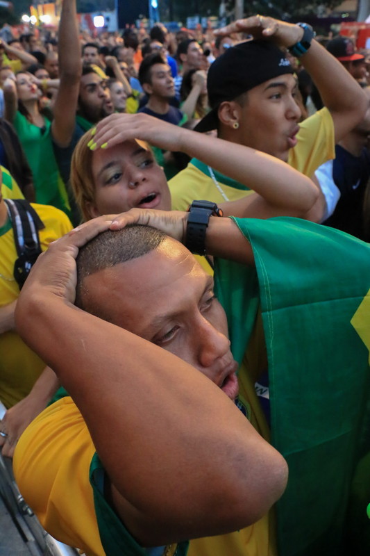 epa04264022 Brazilian supporters gathers at the FIFA fan fest in Sao Paulo, Brazil, 17 June 2014, during the match against Mexico for A group in Fifa World Cup 2014. The game ended 0-0 and Brazil will face Cameroon in their next match on 23 June 2014. EPA/CARLOS VILLALBA RACINES