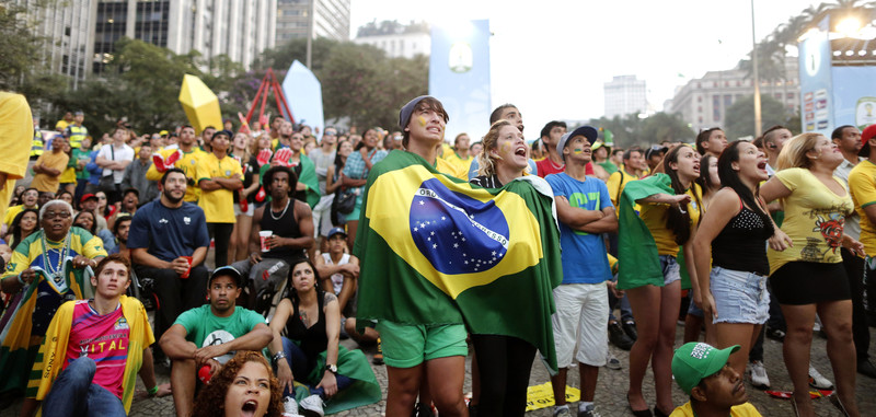 epa04264025 Brazilian fans react while watching the FIFA World Cup 2014 group A preliminary round match between Brazil and Mexico at the FIFA Fan Fest in Sao Paulo, Brazil, 17 June 2014. The match at the Estadio Castelao in Fortaleza ended 0-0. EPA/TOLGA BOZOGLU