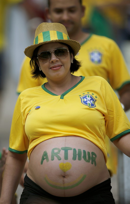 epa04263180 Supporter of Brazil prior to the FIFA World Cup 2014 group A preliminary round match between Brazil and Mexico at the Estadio Castelao in Fortaleza, Brazil, 17 June 2014.