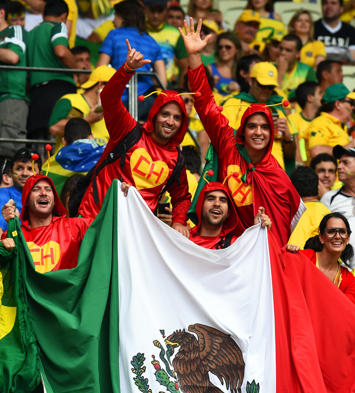 epa04263281 Supporters of Mexico cheer for their team before the FIFA World Cup 2014 group A preliminary round match between Brazil and Mexico at the Estadio Castelao in Fortaleza, Brazil, 17 June 2014.