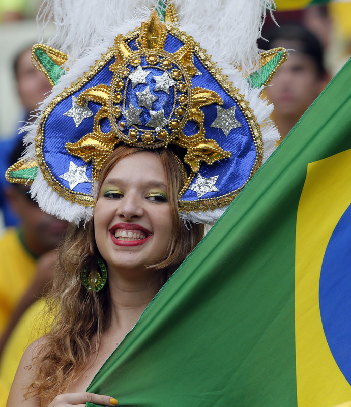 epa04263313 A soccer fan prior the FIFA World Cup 2014 group A preliminary round match between Brazil and Mexico at the Estadio Castelao in Fortaleza, Brazil, 17 June 2014.