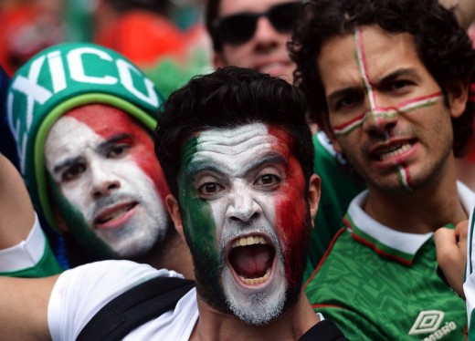 epa04263358 Supporters of Mexico cheer for their team before the FIFA World Cup 2014 group A preliminary round match between Brazil and Mexico at the Estadio Castelao in Fortaleza, Brazil, 17 June 2014.