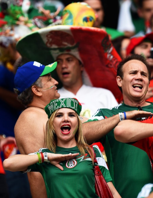 epa04263392 Supporters of Mexico sing their national anthem before the FIFA World Cup 2014 group A preliminary round match between Brazil and Mexico at the Estadio Castelao in Fortaleza, Brazil, 17 June 2014.