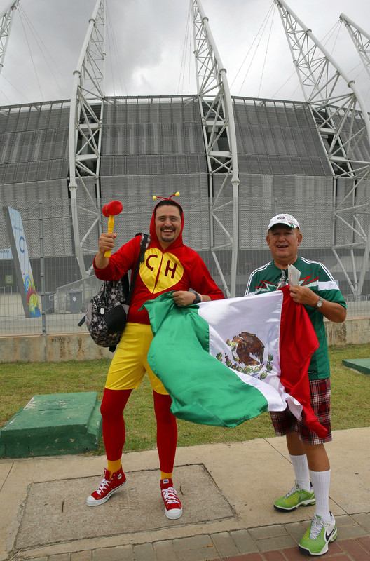 epa04263015 Mexican fans arrive for the FIFA World Cup 2014 group A preliminary round match between Brazil and Mexico at the Estadio Castelao in Fortaleza, Brazil, 17 June 2014.