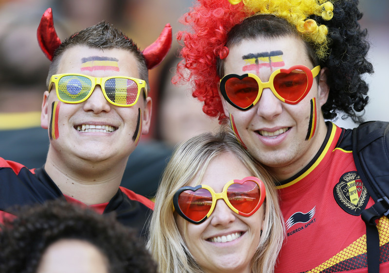 epa04262747 Belgium supporters cheer prior the FIFA World Cup 2014 group H preliminary round match between Belgium and Algeria at the Estadio Mineirao in Belo Horizonte, Brazil, 17 June 2014.
